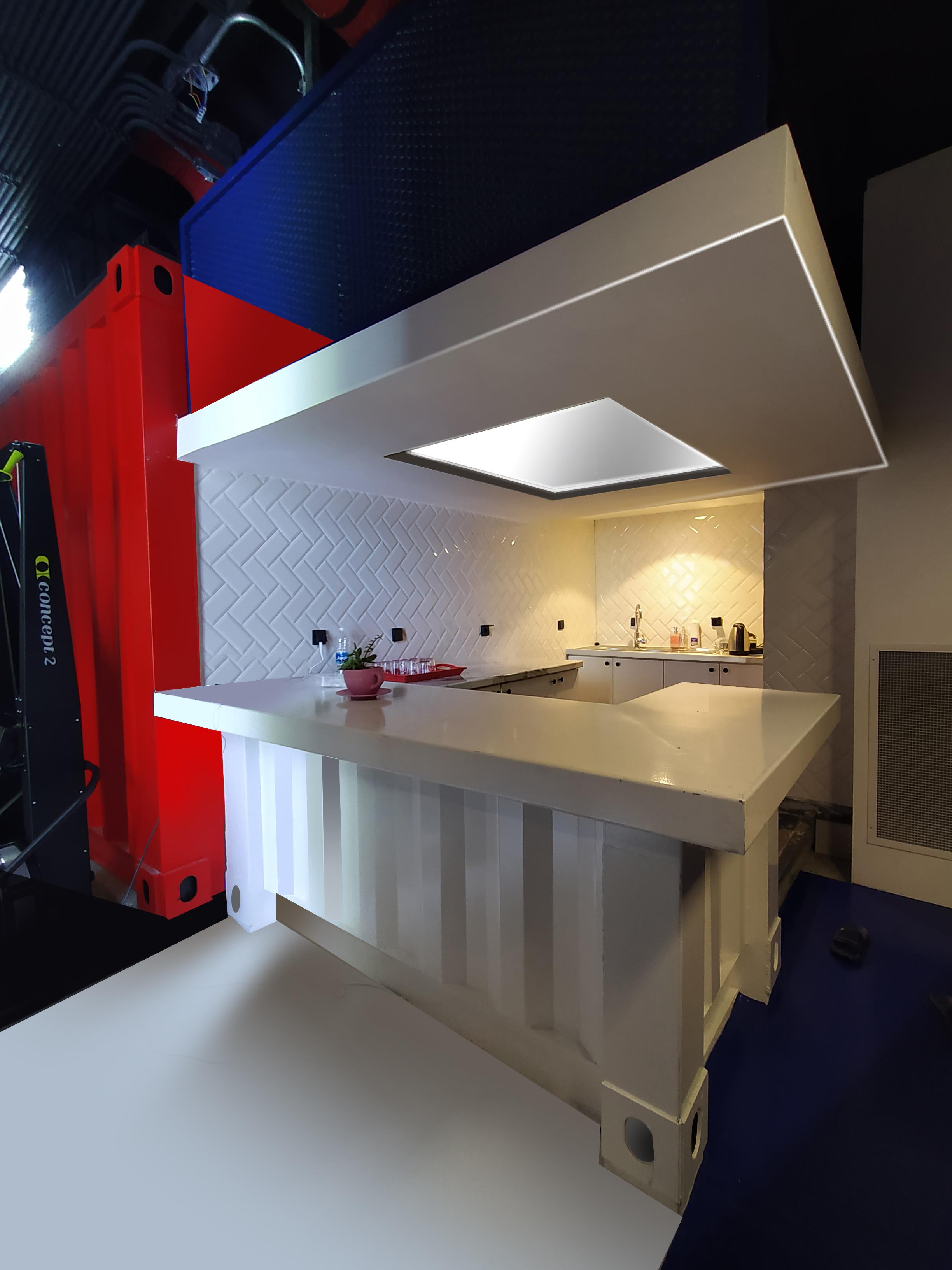 این پروژه یک باشگاه با تم کانتینری است که با دکوراسیون فلزی و جزئیات واقعی کانتینر طراحی شده