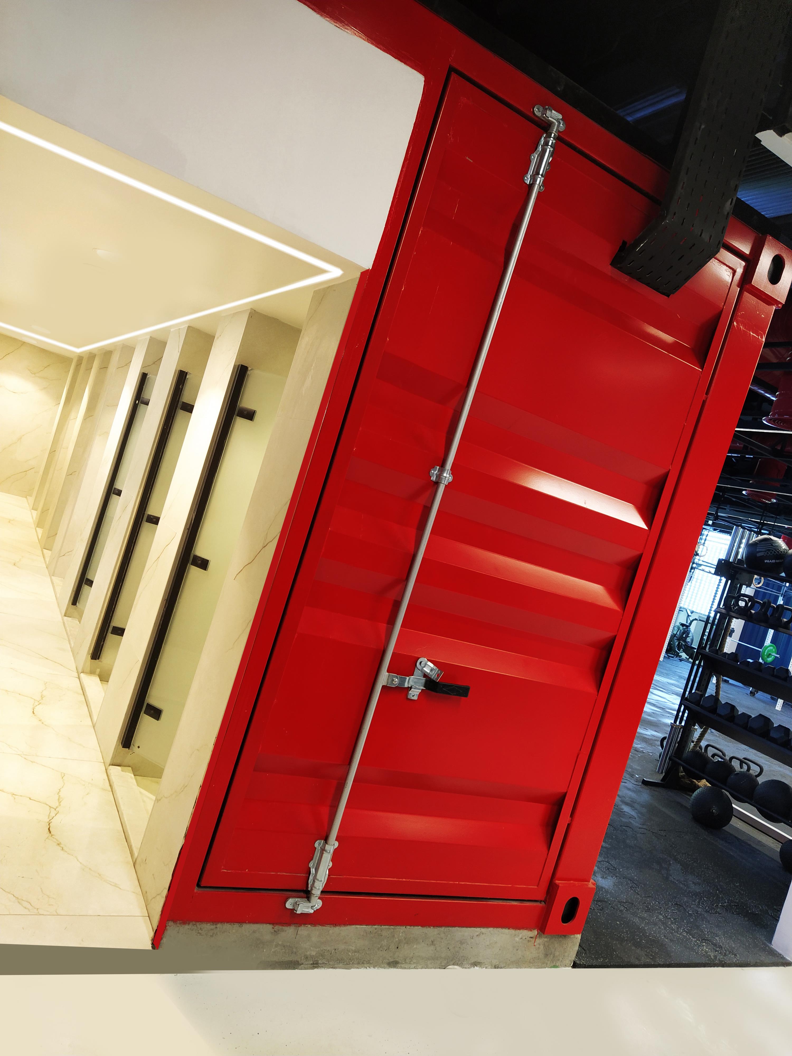 تم اصلی این باشگاه بر پایهی دکوراسیون فلزی و بازآفرینی فضای کانتینرهای واقعی شکل گرفته است. در این پروژه، از درهای دو لنگه کانتینری، قفلها، یراقآلات و جزئیات فنی کاملاً مشابه نمونههای واقعی استفاده شده تا حس اصالت، استحکام و هویت صنعتی به بهترین شکل منتقل شود.